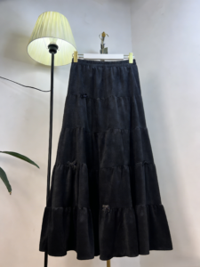 Crafted with a beautifully tiered silhouette, the skirt features multiple softly gathered layers that create natural volume and graceful movement. As you walk, the fabric flows lightly, adding depth and dimension without feeling heavy.