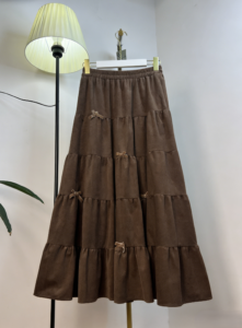Subtle bow details are thoughtfully placed along the tiers, offering a touch of sweetness while keeping the overall look refined and mature. The elastic waistband provides a comfortable, flexible fit, making this one-size skirt suitable for a variety of body types.