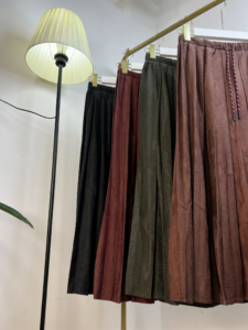 Available in multiple rich, muted colors, it pairs easily with knitwear, coats, or boots—an essential piece for fall and winter styling.